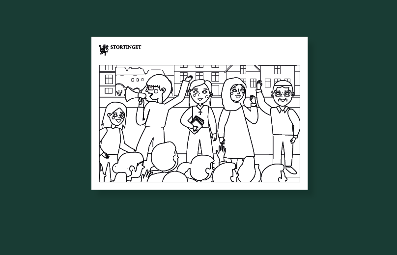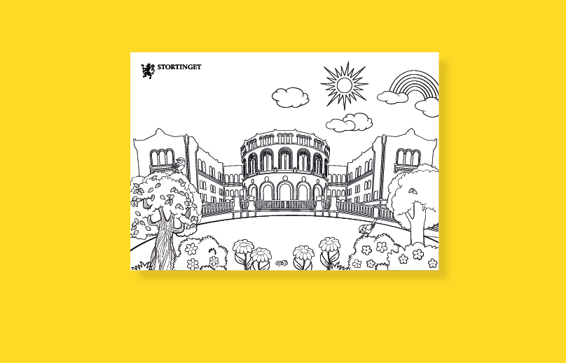 Flere av fargeleggingsarkene er hentet fra ulike undervisningsressurser på Stortinget undervisning. Alle illustrasjonene er laget av Stortinget.