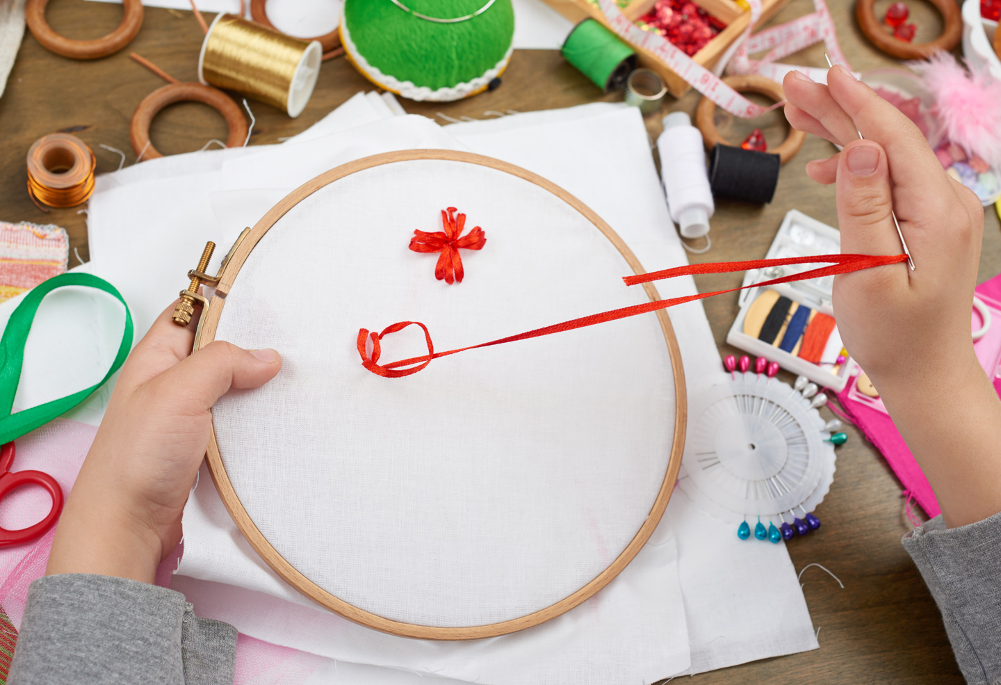 No er det din tur til å finne fram nål, tråd og tekstilar! Bruk gjerne gjenbruksmateriell.